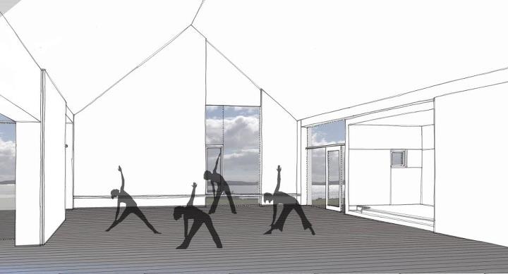 Option B – New Build Hall: How a new hall might feel from the inside – a more outward looking hall than adaptation of the existing hall would allow.